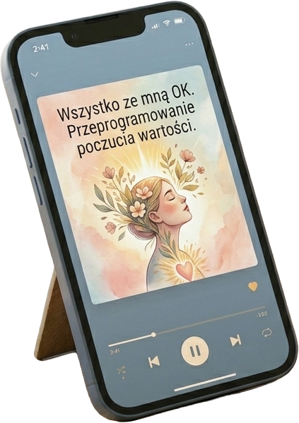 Ćwiczenia uwalniające wracają do momentów, w których Twój umysł zapisał instrukcję „nie jestem dość dobry”. Nagranie transformacyjne zapisuje nową prawdę. Zakładasz słuchawki, słuchasz przez 30 dni — resztą zajmuje się Twój umysł.